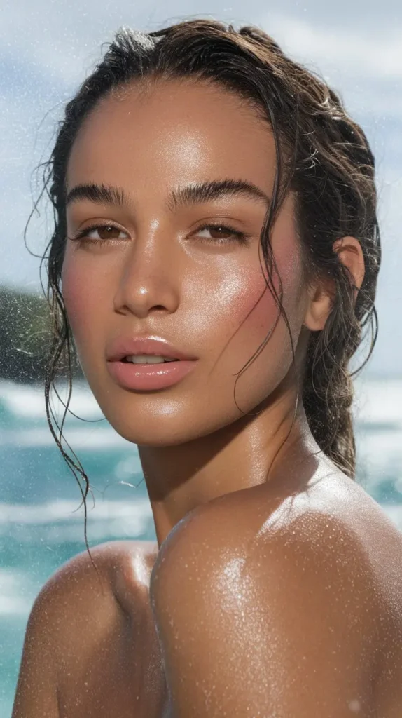 A radiant, sun-kissed complexion is the ultimate beach beauty goal. Opt for a lightweight, tinted moisturizer or BB cream with SPF to even out your skin while protecting it from UV rays. A touch of bronzer on the high points of the face, like the forehead, cheekbones, and nose, will create a natural, sunlit effect. To enhance the glow, a dewy highlighter on the cheekbones and collarbones adds the perfect luminous touch.